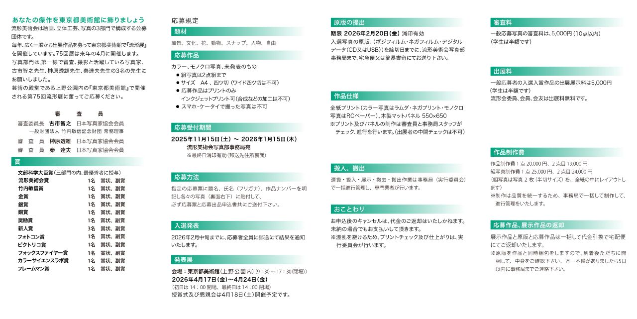 2025.12.12第75回流形展〈写真部〉公募受付中!
